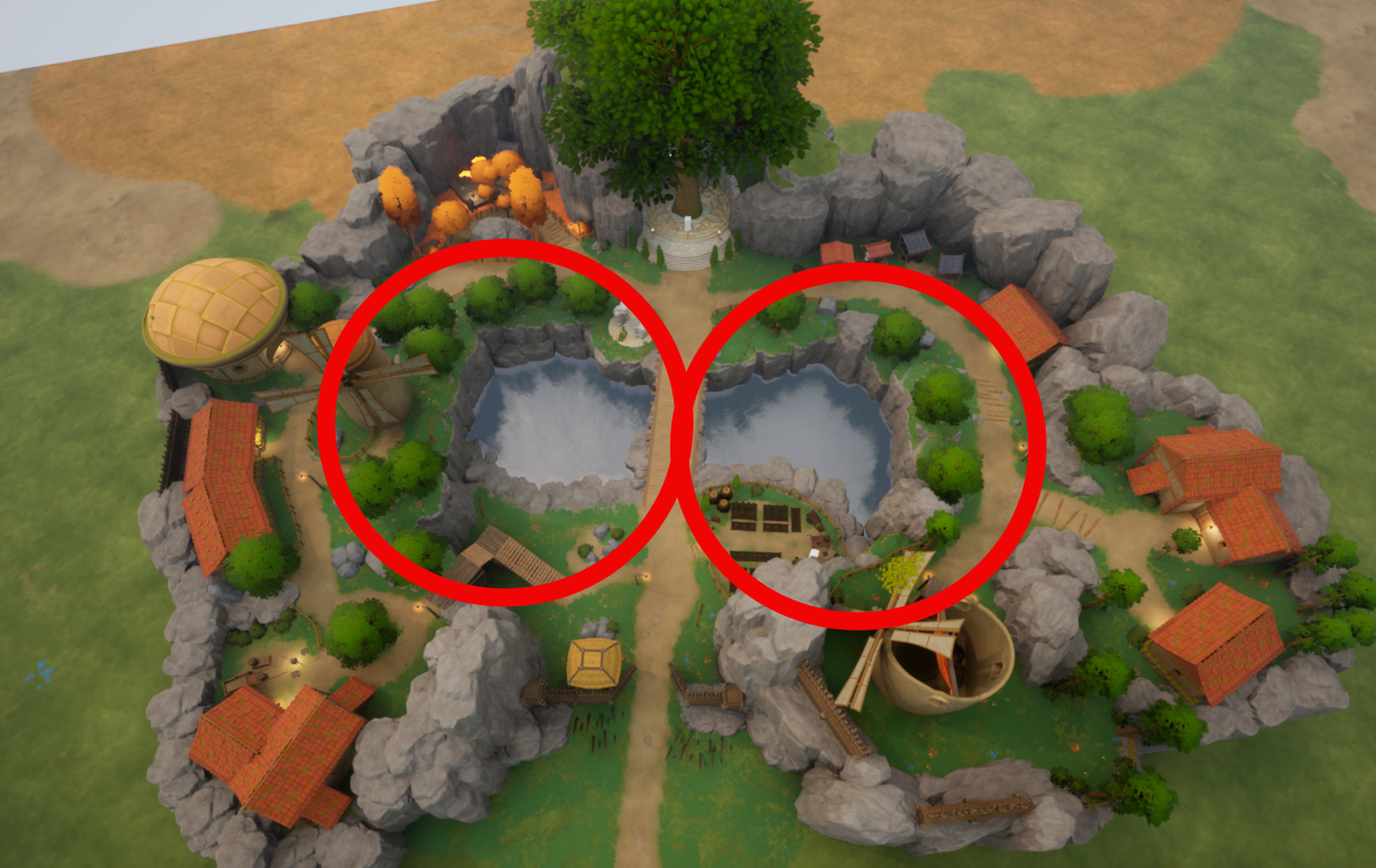 I wanted to create a clear and decisive landmark that players can focus on while navigating the village.